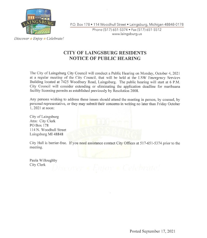 Public Hearing October 4th Extending or Eliminating Application Deadline for Marihuana Licensing