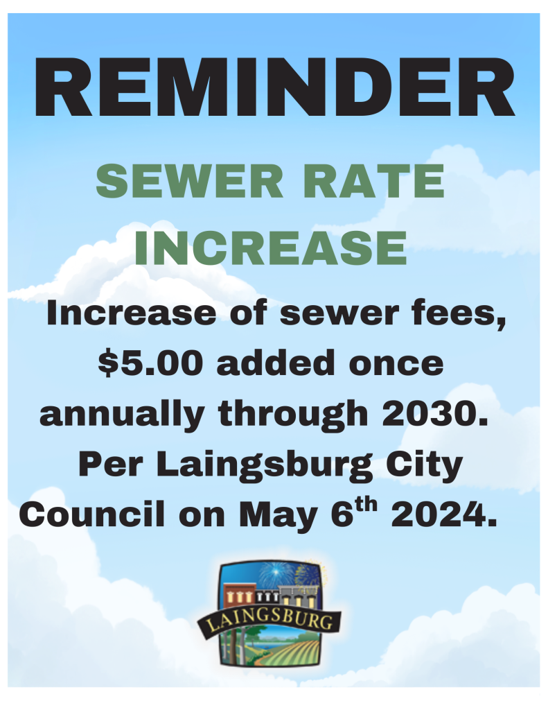 REMINDER Sewer Rate Increase for 2026 to begin First Quarter. Increase of sewer fees, $5.00 added once annually through 2030. Per Laingsburg City Council on May 6th 2024. This will change the quarterly sewer bills to $105.00 for the 2026 calendar year. Then next January the fees will increase again, […]