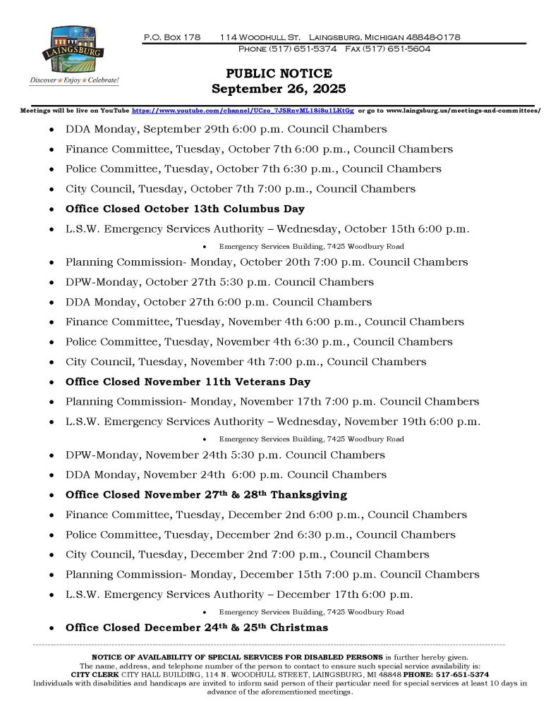 The City of Laingsburg currently has vacancies for: Board of Review (2 seats) Library Board (1 seat) Planning Commission (3 seats) Zoning Board of Appeals (1 seat) Click here for the application!