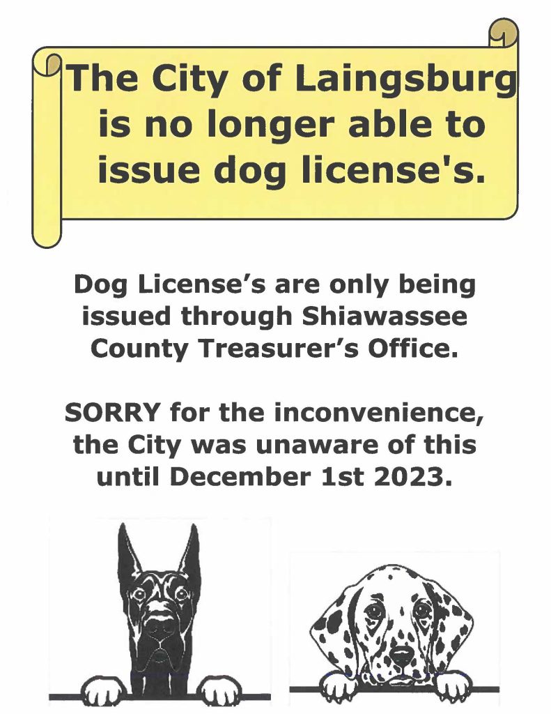 City of Laingsburg No Longer Able To Sell Dog License’s