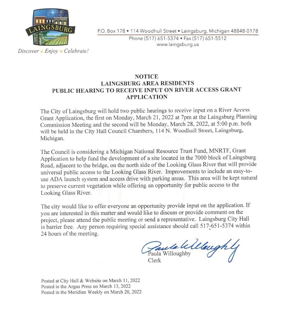 Public Notice – March 7th 2022 City Council Meeting Draft Downtown Development Authority TIFA Plan