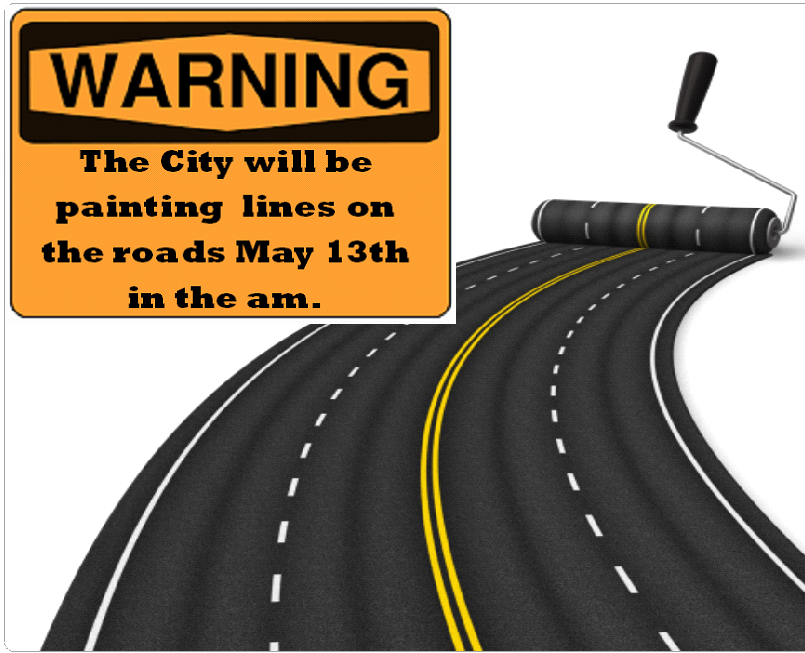 The City of Laingsburg will be painting the Center lines and fog lines on the City Streets tomorrow morning May 13th. Please refrain from parking on the City Streets. Thank you